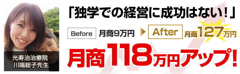 1人治療家専門塾で経営の手順を学び、その通り達成した結果