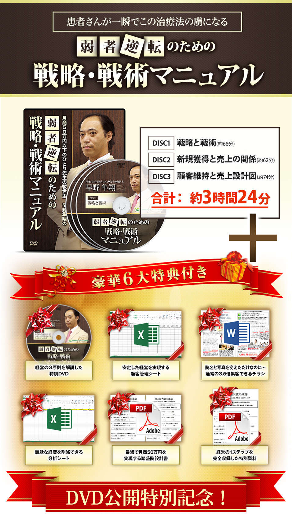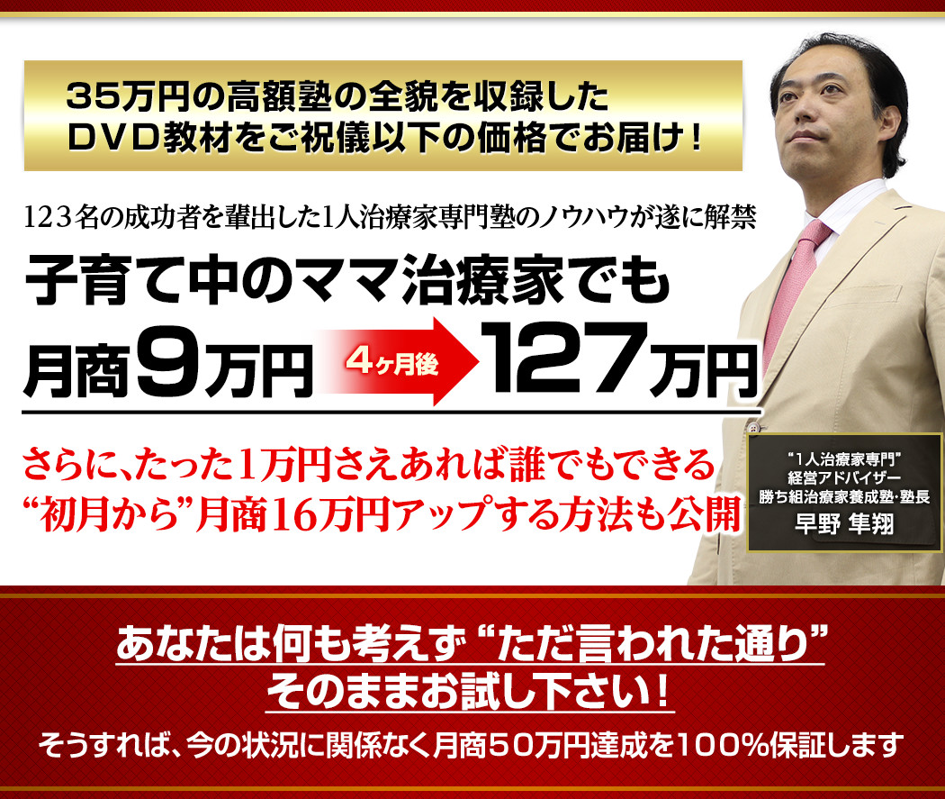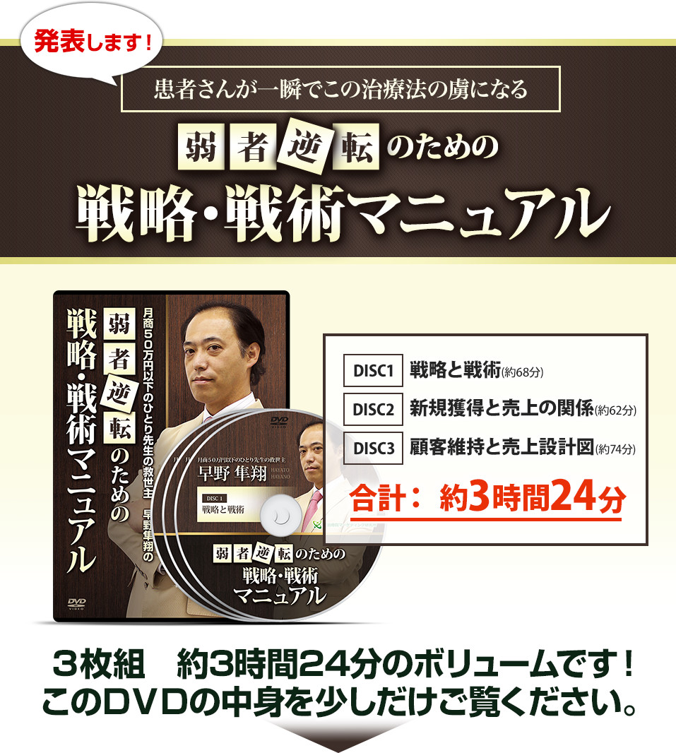 今回発表したノウハウは通常35万円の塾でのみ公開されたノウハウであり、タイミングや資金的に入塾できなかった先生からのお問い合わせにより、作成されたDVDプログラムです。
