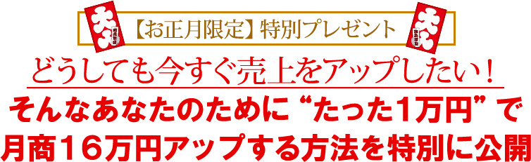 なぜなら、この特別プレゼントを手に入れることができれば最短で当日、遅くても1ヶ月以内に売上をアップすることが可能だからです。