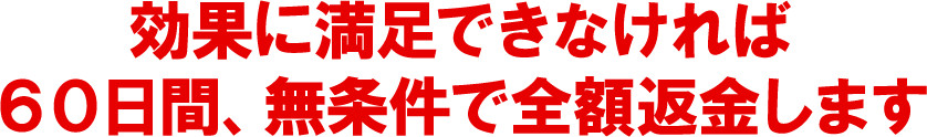 みられないということであれば、 弊社商品発送日から60日以内(必着)であれば、全額返金します。